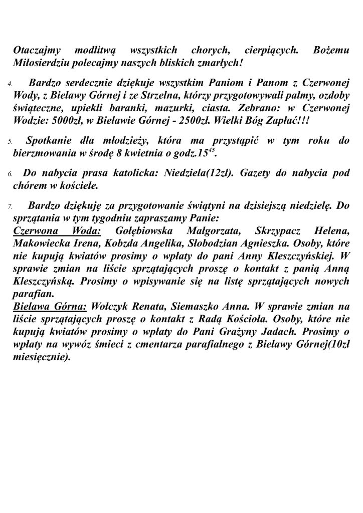 Ogłoszenia Duszpasterskie – Niedziela Palmowa – 29 marca 2026